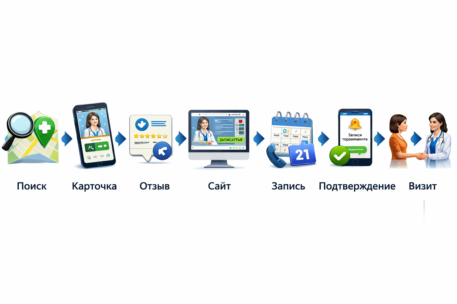 не бренд, а врача. Поэтому если бренд клиники сильный, а профили врачей слабые, вы теряете деньги прямо в точке выбора.